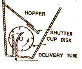 The mechanism consists of a circular shaft mounted with many circular discs. Each disc is provided with several cups or spoons in a circular path...This arrangement is kept at the bottom of the seed box. When the shaft rotates, the discs also rotates. Seeds are picked up by the cups and then dropped in to a funnel from where the seeds travel through the seed tube and reach the furrows. The cups have two faces, one for larger seeds and the other for smaller seeds